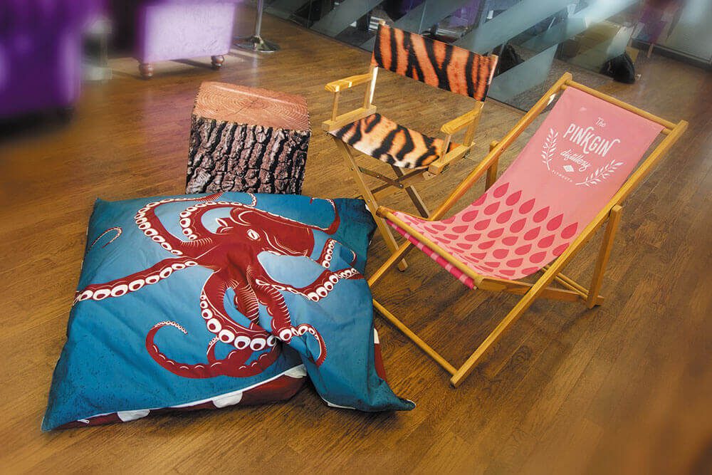 Fromseating cubes, cocktail tables and slouchy chairs, to mammoth deckchairs we’ll ensure your working space is on brand as well as comfy.