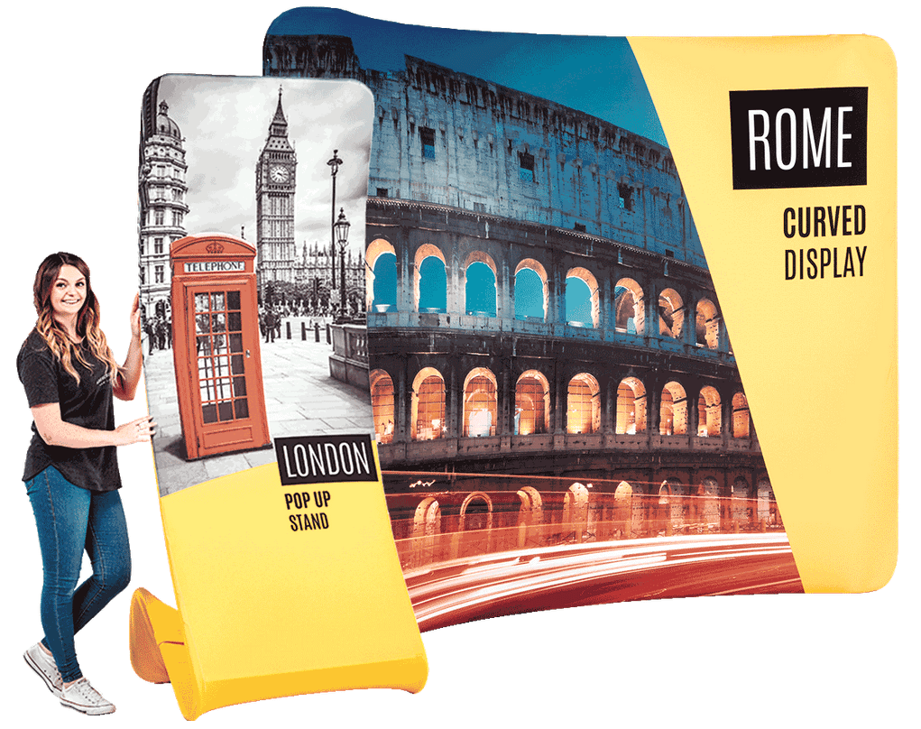 Create huge eye-catching displays without the eye-watering price tag. From roller and PVC banners, flags, tablecloths and fabric backdrops to gazebos, deck chairs, bean bags, cafe tables and meeting booths,